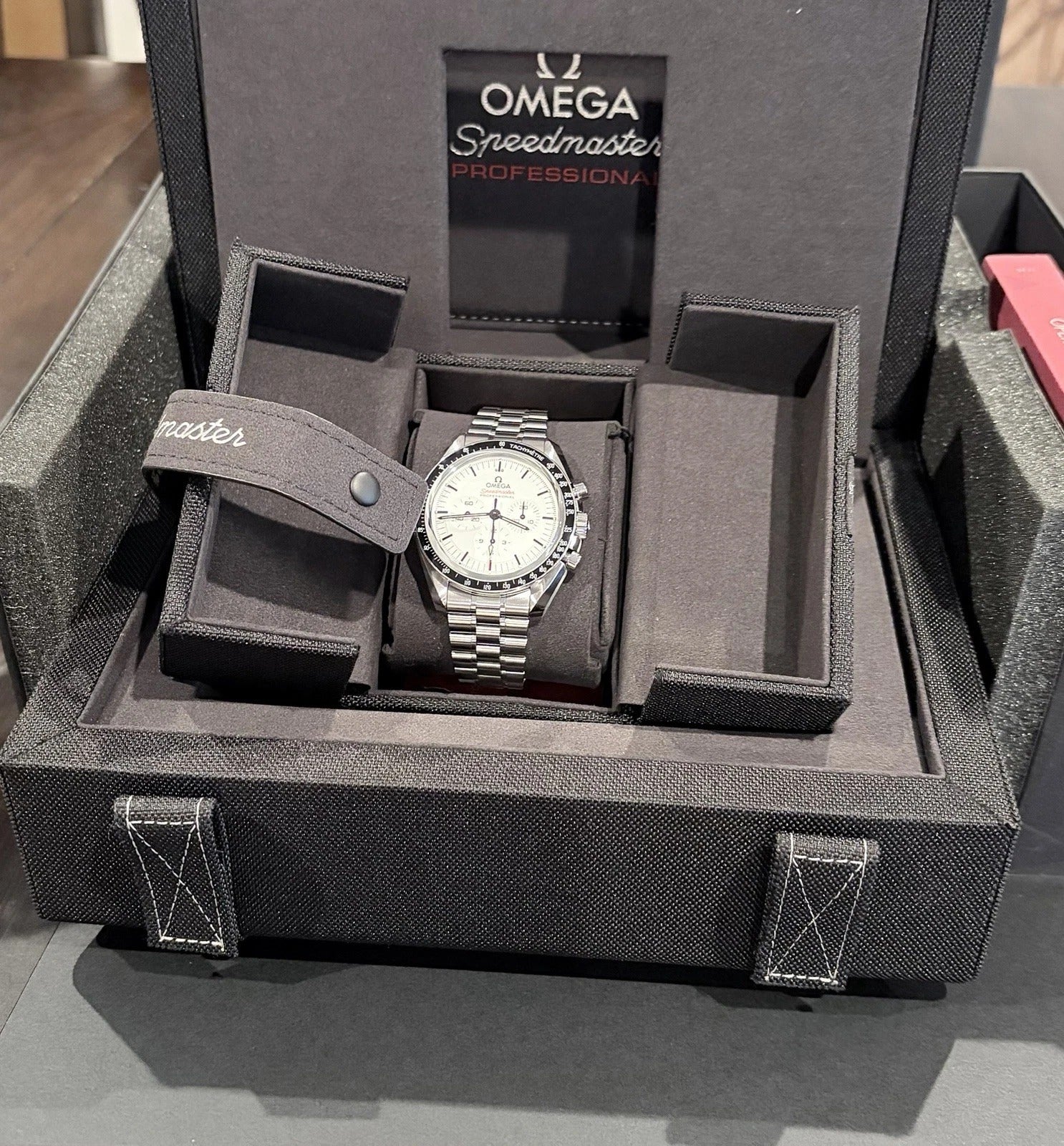 Omega speed-master professional. White dial. Full set of box/papers/links and original receipt. Warranty card/receipt dated June 2024. Purchased from Omega boutique.