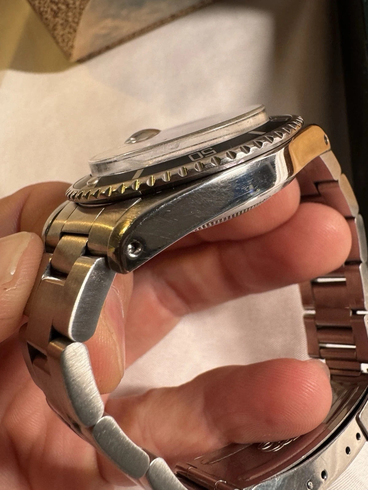 Selling my 1973 Submariner. Watch was serviced in 2023 by Rolliworks and still keeps excellent time! I wear it sparingly and would prefer to sell it to get the next watch on my bucket list. 3.3 mil serial dates the watch to 1973, 93150 bracelet with 580 end links. The clasp is stamped M6, dating it to 1988 assuming it is a service clasp. Comes with a period correct passport box, unknown if it is original to the watch. No papers unfortunately, but will be authenticated for the buyer.